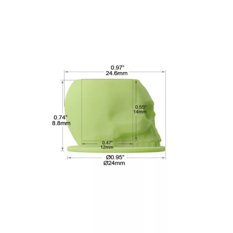 Ez a szilikon, koponya alakú festéktartó kupak ideális választás minden tetováló számára, aki stabil és megbízható festéktartót keres a precíz munkavégzéshez. Méretének köszönhetően kényelmesen adagolható benne a festék, kialakítása pedig biztosítja, hogy ne boruljon fel használat közben, így tisztább és biztonságosabb munkát tesz lehetővé. Rugalmas, puha szilikon anyaga külön előnyt jelent: használat során nem kell attól tartani, hogy a tű megsérül, ha véletlenül érinti a kupak falát.